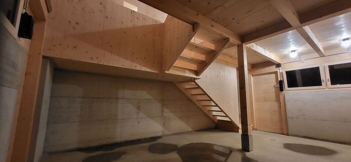 Deckenverkleidungen aus Täfer oder Gipsfaserplatten zum Verputzen. Treppen in Holz oder kombiniert mit Metall. Bodenkonstruktionen – auch mit Bodenheizung – und verlegen von Bodenbelägen aus Parkett, Vinyl, Laminat oder Kork. Wir schaffen heimelige oder moderne Ausbauten und eine wohnliche Atmosphäre. Im Aussenbereich machen wir Terrassenböden, Zäune oder Sichtschutzwände.