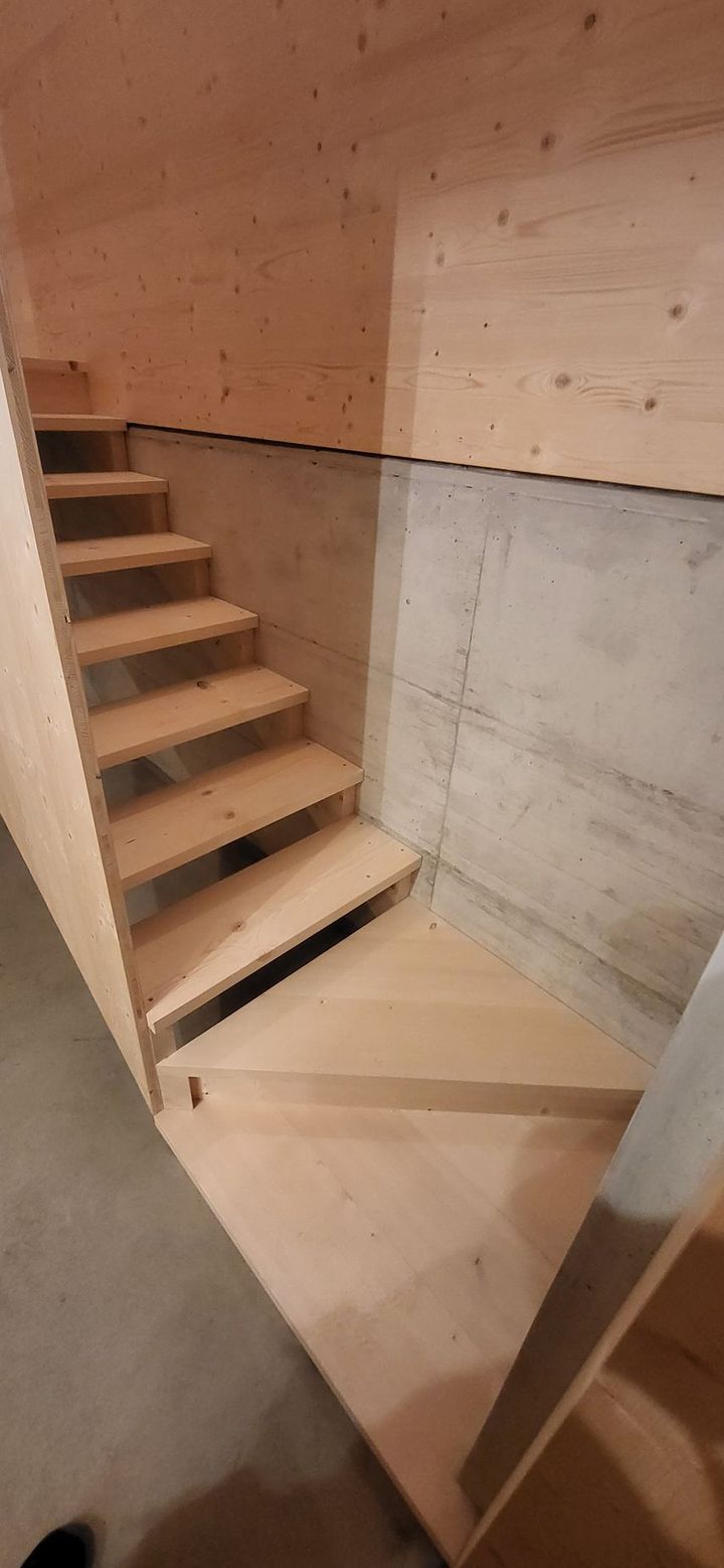 Deckenverkleidungen aus Täfer oder Gipsfaser-platten zum Verputzen. Treppen in Holz oder kombiniert mit Metall. Bodenkonstruktionen – auch mit Bodenheizung – und verlegen von Bodenbelägen (Parkett, Vinyl, Laminat, Kork).